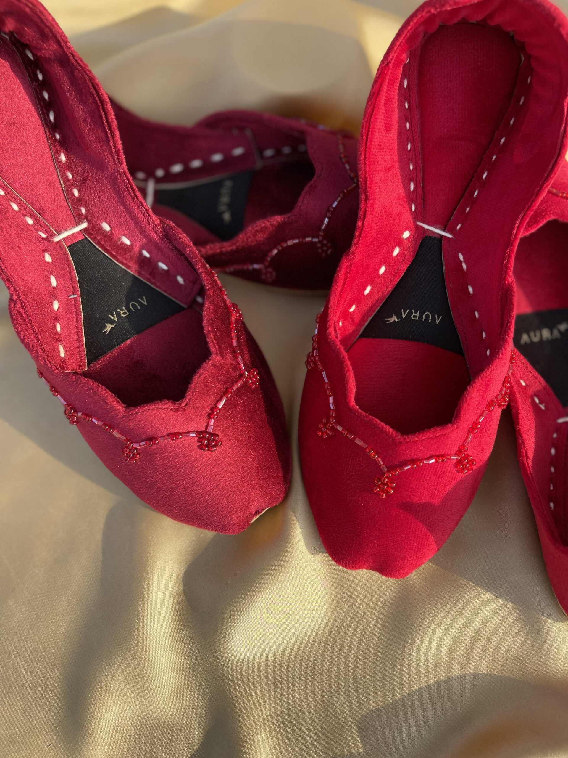 Bliss maroon, a premium color itself shows a much prettier look when smoothly integrated with small round pearls. A versatile design that will never get off the eyes. Select this charming pair and style seamlessly.Â
